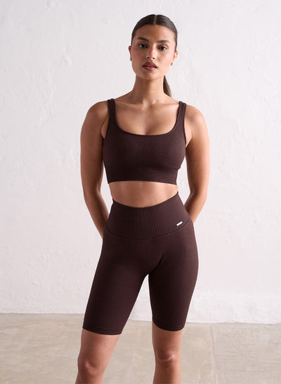 Cacao Ribbed Seamless Biker Shorts