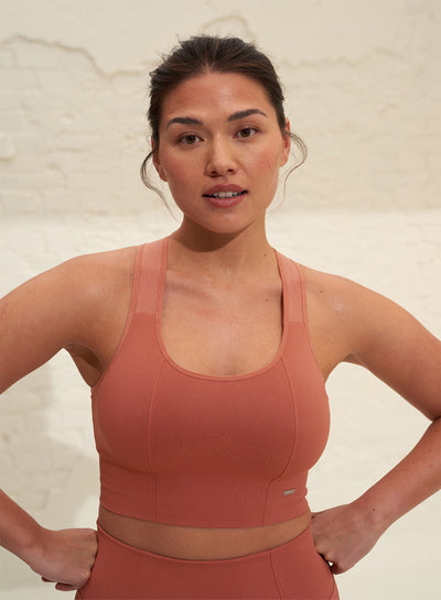 Beige High Support Ribbed Bra